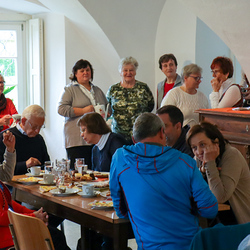 Um 9:00 Uhr wurden wir im Pfarrhof Obdach, der ehemaligen Pfarre unseres Pfarrers Claudiu Budău, mit Kaffee und Kuchen köstlich versorgt.