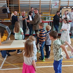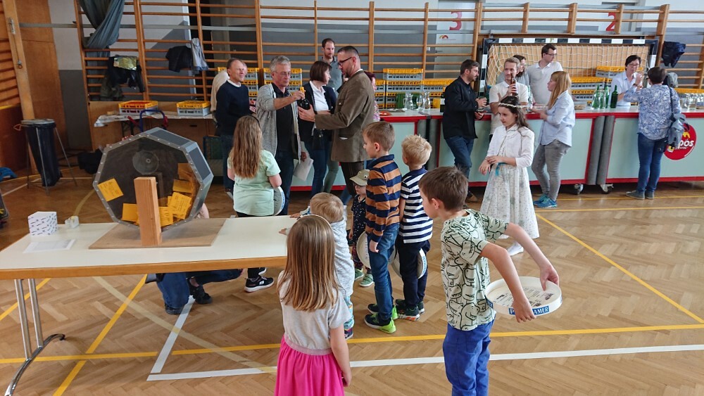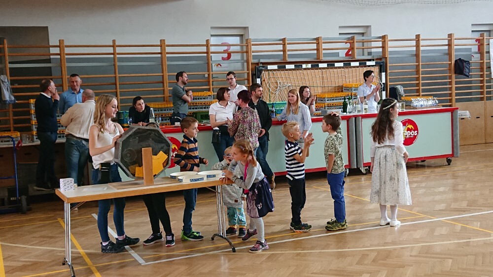 Nach der wunderschön gestalteten Erstkommunion zogen die Erstkommunionkinder in die Halle um beim Start des Pfarrfests dabei zu sein. Nachdem wir letztes Jahr richtiges Wetterglück hatten, mussten wir diesmal in die Veranstaltungshalle ausweichen. Dem Wetter zum Trotz war die Stimmung sehr gut. Das Kinderprogramm war gut besucht, viele Preise wurden verlost und natürlich gab es wieder genug zu essen und zu trinken. Obwohl diesmal besonders viele Torten gebacken wurden, waren am Schluss alle weg.