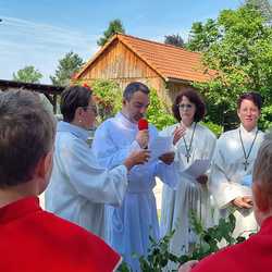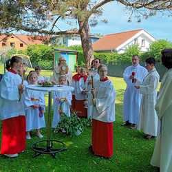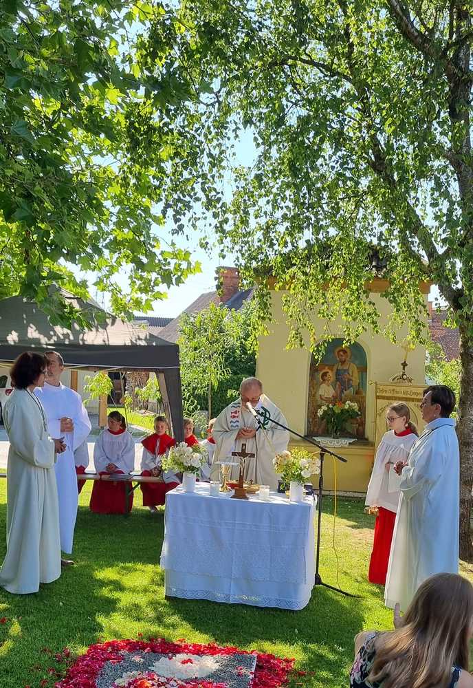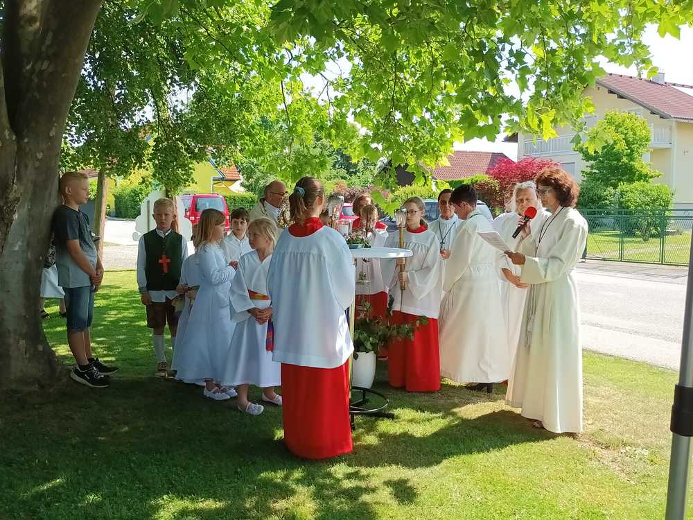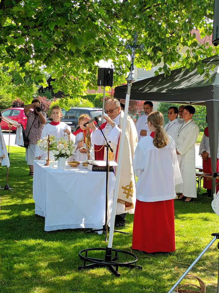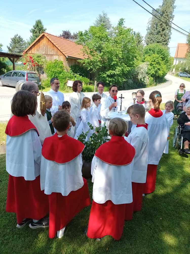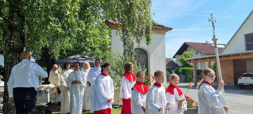 Zu Fronleichnam demonstrieren Katholikinnen und Katholiken ihren Glauben in der Öffentlichkeit. Sie demonstrieren dabei nicht gegen etwas sondern tretenfüretwas ein. Gemeinschaft und Zusammenarbeit zeigten die Pfarren Lieboch und Tobelbad in dieser schönen Feier. Neben den Kindern in ihren Erstkommuniongewändern, waren auch der Kameradschaftsbund und die Feuerwehr mit Abordnungen beider Pfarren vertreten. Vikar Norbert Glaser schloss mit dem eucharistischen Segen für die Kirche.